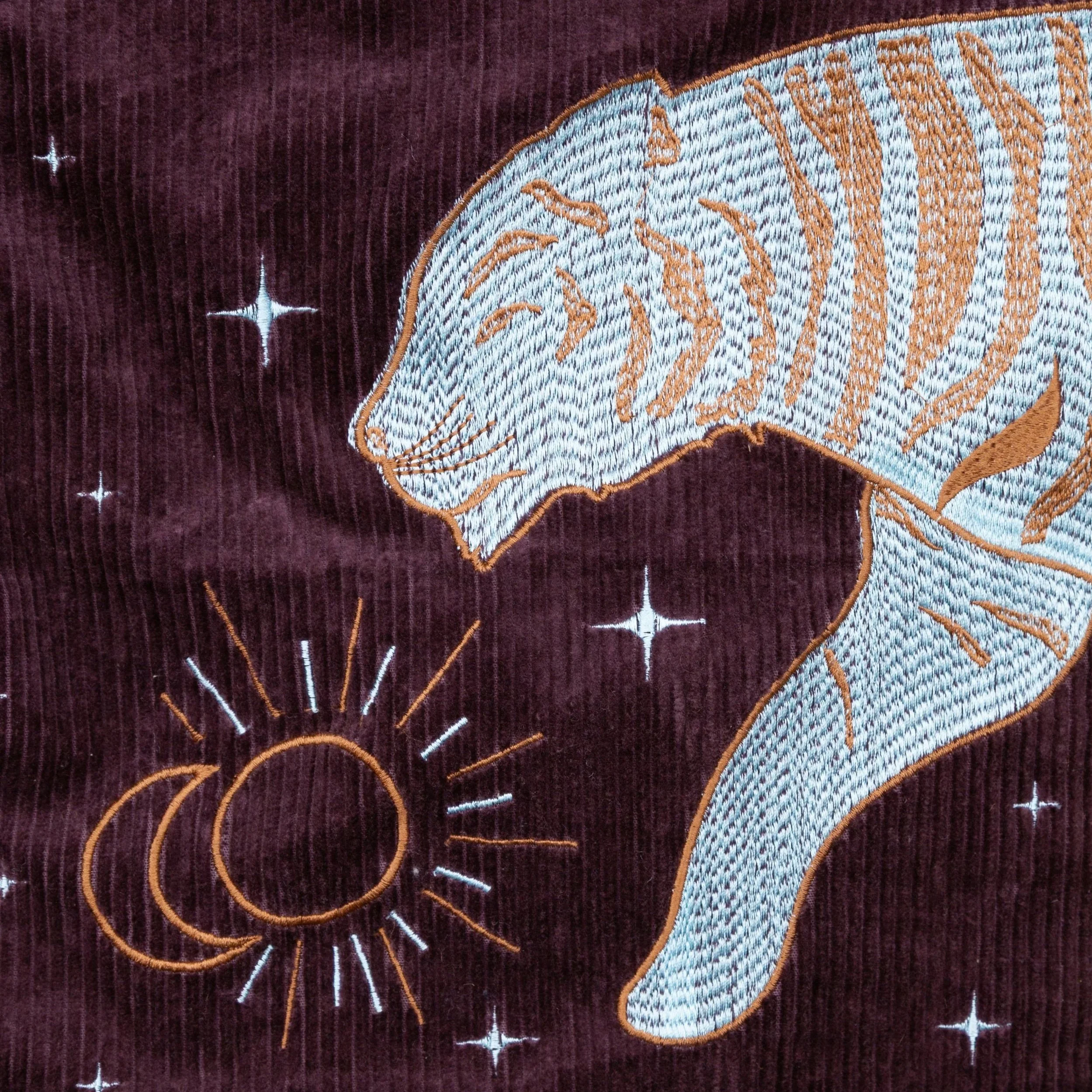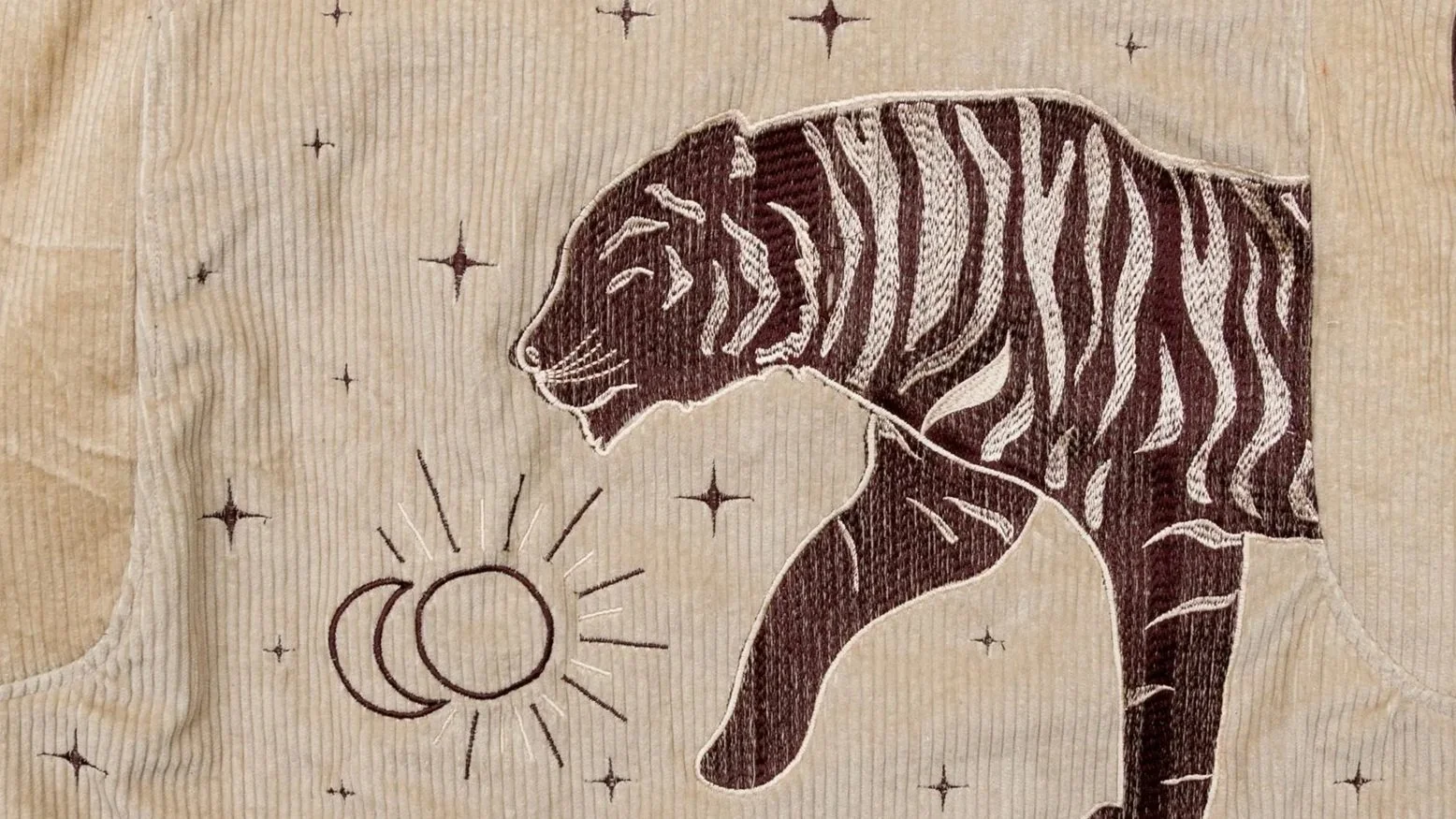 Les jackets Wearing Juhu sont confectionnées en velours côtelé et se déclinent en trois couleurs. Brodées au dos d’une belle illustration de tigre, symbole de force et de puissance, elles affirment un caractère unique. Pensées en France par la créatrice, elles sont ensuite réalisées en Inde, dans le respect des techniques artisanales traditionnelles et du travail manuel.